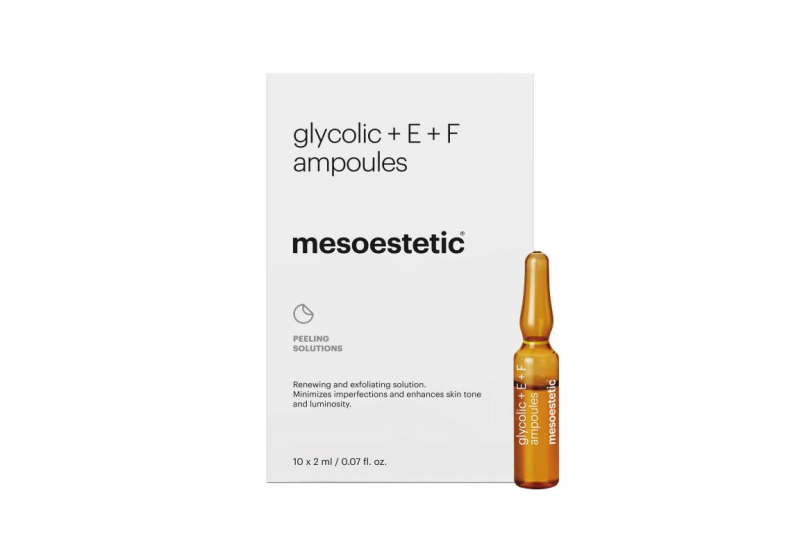 Mesoestetic Glycol Acid 10% + vitamine E + F Ampul geeft een mooie glow aan de huid.